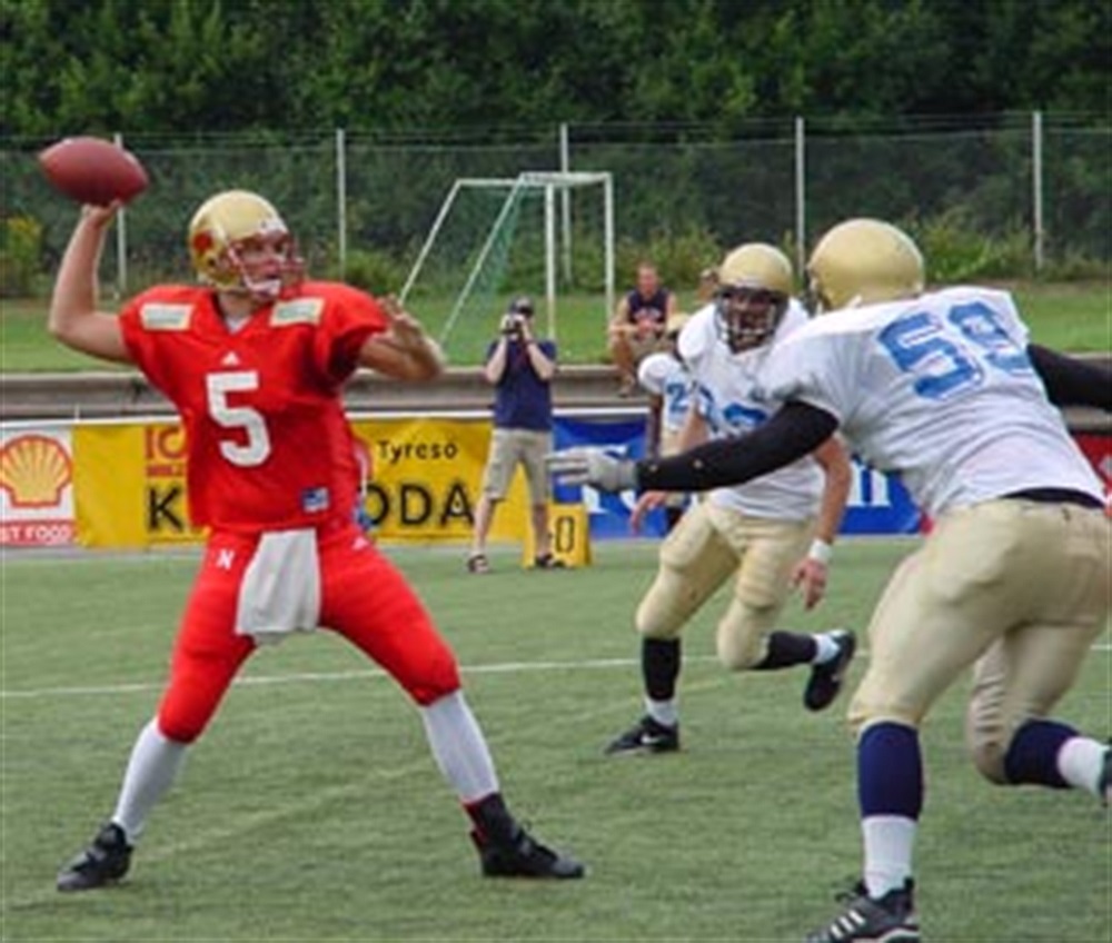 Solna seger alltså, 28-23, välkomna poäng för ett Chiefs som var aningen mer taggat (eller kanske utvilat) i slutskedet. Scott Blundon och Chris Williams var de stora namnen framåt, medan Sean Farmer (bästa matchen på svensk mark?) och ur-veteranen Jörgen Tegefjord var nyttigast bakåt.